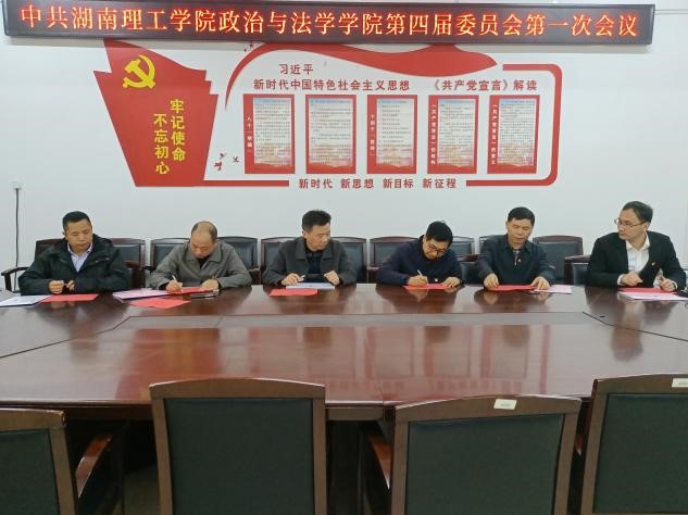 随后,新当选的党委委员召开第一次全体会议,选举喻义东为党委书记,周四丁、张陈武为党委副书记,明确新一届党委委员的工作分工,接着,喻义东代表新一届中共湖南理工学院政治与法学学院委员会成员讲话,他对校党委以及学院给予他和新一届委员会的信任表示感谢,表示将会保持初心,在学校党委的领导下,团结带领新一届党委委员以及全体政法师生合力打造一个更加优秀的学院。