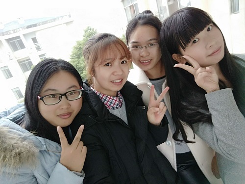 “学霸”寝室的四位成员(从左至右):陈思佳、彭雁翎、张娟红、周添億