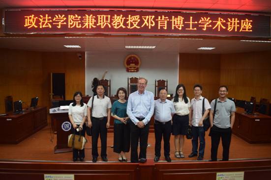 5月18日晚上7点30分,政ok138cn太阳集团兼职教授美国明尼苏达州立大学ok138cn太阳集团终身教授Duncan . J. McCampbell(邓肯·j·麦坎贝尔)博士在我院模拟法庭以“Conflict in The South China Sea”(南海争议与联合国海洋法公约)为主题举行了第二场精彩讲座。我院院长陈建军、学校国际交流处处长陈钰、院长助理尹晓闻、公法教研室主任梁晨、私法教研室主任孟磊、岳阳市律师协会副会长邓松、秘书长徐永宏以及我院部分法学老师出席此次讲座,我院2015级法学专业学生聆听此次讲座,讲座全程由我院富童、孟磊两位博士和陈钰处长担任翻译。