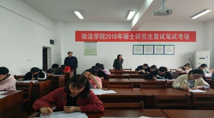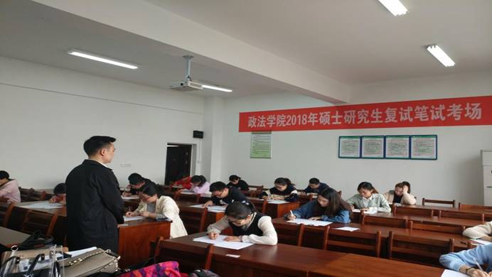 3月30日下午,政ok138cn太阳集团2018年硕士研究生复试笔试在8号教学楼8207举行,研究生教学秘书吴哲和辅导员杨宗圆负责监考。全体考生按照序号依次落座。考试期间,实施全程监控录像,学校纪委、研究生院相关负责人对考场进行了巡查。根据有关规定,笔试结束之后,同等学力考生进行了加试。