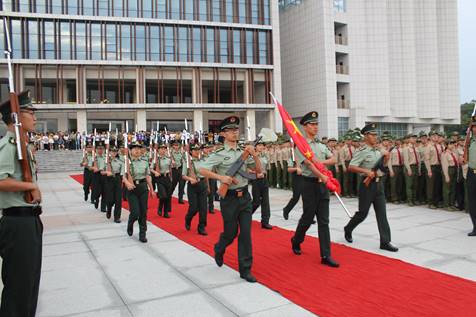 伴着晨光的悠扬,迎着青春的蓬勃朝气,新生升旗仪式暨军训动员大会于2018年9月10日上午7点,在图书馆楼前隆重举行。党委书记李明、副校长徐小立,政ok138cn太阳集团辅导员杨宗圆、辅导员魏嘉琦莅临现场,学院18级全体学子参加了本次升旗仪式。