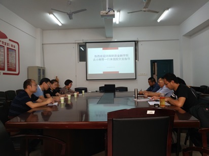 2018年9月17日下午,河南财政金融学院法律系主任古小刚博士等一行四人来我院考察交流,我院院长陈建军、院长助理尹晓闻、公法教研室主任梁晨、私法教研室主任孟磊在我院会议室接洽古小刚主任一行,双方进行了交流。