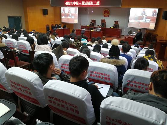 2018年11月15日下午,岳阳市中级人民法院在我院模拟法庭公开审理上诉人冯某非法经营一案。我院法学专业2017级学生参与了旁听,旁听区座无虚席。