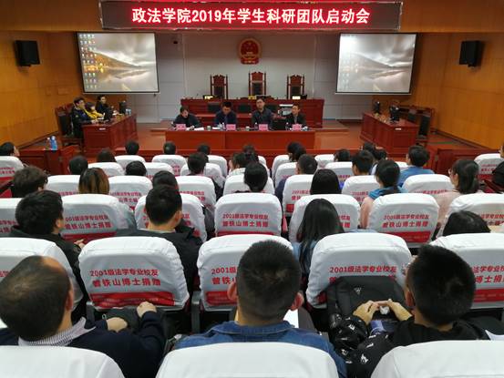 4月2日下午15时30分,我院2019年本科生科研团队启动会在学院模拟法庭隆重召开。由我院彭江辉、周四丁、尹晓闻、孟磊、杨忠明、夏尊文、刘杨、钟艳、高佳、梁晨、潘凤湘等11位首批学生科研导师、93名学生共同组成的11支学生科研团队齐聚一堂。这是我院历史上参与师生人数最多的一次学生科研工作盛会。校团委副书记刘思超,我院2016级、2017级法学专业班级导师、校后勤处副处长吕强应邀出席启动会。会议由学院党总支副书记石蕙主持。