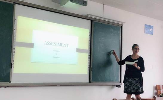 在第一节课中,首先Tatiana教授简单介绍了形成性评价与终结性评价的定义、区别以及作用,为同学们在今后的教学实践中如何对学生进行评价提供了理论指导。其次,她还强调了教师话语及学生话语在时间合理分配上的重要性,即“10/2”模式,教师每讲10分钟,学生就特定话题交流2-5分钟左右。