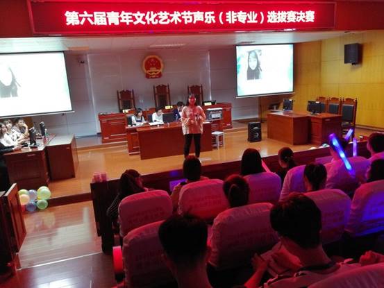为进一步提升大学生的综合素质,丰富校园文化生活,6月4日晚7时,由校团委主办、政ok138cn太阳集团承办的“湖南理工学院第六届青年文化艺术节声乐(非专业)选拔赛决赛”在学院模拟法庭隆重举行。来自物电、数学、经管、信息、化工、政法、中文等12支参赛队伍同台竞技。我院2015、2016级辅导员王旭智老师及学院团学分会部分学生干部受邀担任此次比赛的点评嘉宾。比赛由我院大一年级学生吴昊楠、肖子欣主持。