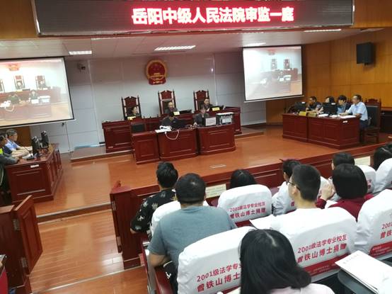 6月13日上午9时,岳阳市中级人民法院审监一庭在我院数字法庭现场开庭,公开再审一起饲养动物损害责任纠纷案件,我院2017级法学专业学生旁听了本次庭审。