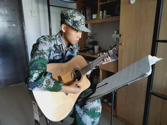 这颗“赤子之心”是他面对高考时刷完的四大箱满满当当的题目,是他面对自己的爱好时坚持自己许下的承诺。回到寝室,他用吉他弹唱了一首《纸短情长》,沉浸在自己音乐世界里的胡彧欣一扫“钛合金直男”的状态,成了琴弦上的舞者,意气风发,悠扬旋律,嗓音醇厚,有如涓涓细流。