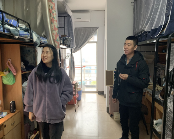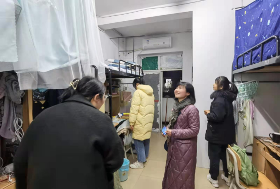在学生寝室的走访中,班主任老师、辅导员老师逐间对学生进行看望,了解学生们的宿舍生活状况,与学生交流新学期的规划,并叮咛学生们要搞好寝室的文明卫生,要注意用电用水安全,要努力营造寝室和睦团结的良好氛围。(撰稿人:曹炜悦;初审:石蕙;终审:陈建军)