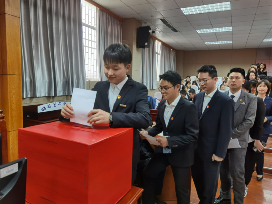 会议在庄严的国歌声中拉开帷幕。学院党委委员、书记陈建军宣读《政治与法学学院党委党员大会选举办法(草案)》;学院党委委员、副院长周四丁介绍出席中国共产党湖南理工学院第四次代表大会的代表候选人名单和候选人基本情况;学院党委委员、副书记石蕙宣读监票人建议名单和宣布计票人员名单。与会的正式党员采取举手表决的方式通过了《选举办法(草案)》、候选人名单及监票人名单。选举过程严格按照学校规定程序进行,在监票人的主持下,采取差额选举的方式,公正、规范地完成了选举过程。经全体正式党员投票,选举产生(按姓氏笔画排序)石蕙、陈建军、屈凌宇、梁晨、彭江辉5名同志为中共湖南理工学院第四次代表大会代表。