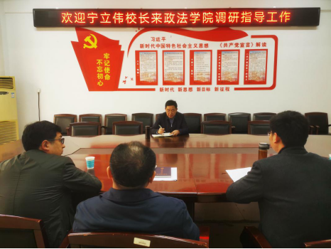 宁立伟校长在认真听取学院基本情况的汇报后,对政ok138cn太阳集团取得的成绩给予了充分肯定。他认为工程法复合型、应用型人才培养和工程法学特色太阳集团tyc9728符合国家新文科建设的方向,要坚定不移地做特做强,在条件成熟后应该冲击国家级教学成果奖;学校大力支持与经济社会发展密切相关的知识产权专业的申报和法律硕士专项评估工作;要紧紧抓住师资队伍建设这个核心,这是所有工作的重中之重,要下大力气完成人才引进任务,特别注意学科团队的引进;学生工作特色不仅要保持,还要发扬光大;要结合政ok138cn太阳集团办学历史和实际,紧扣内涵建设要求,认真研讨和谋划学院“十四五”建设发展规划特别是师资队伍建设规划,以便为学校创大申博后的招生规模调整及结构的优化打下良好的基础。