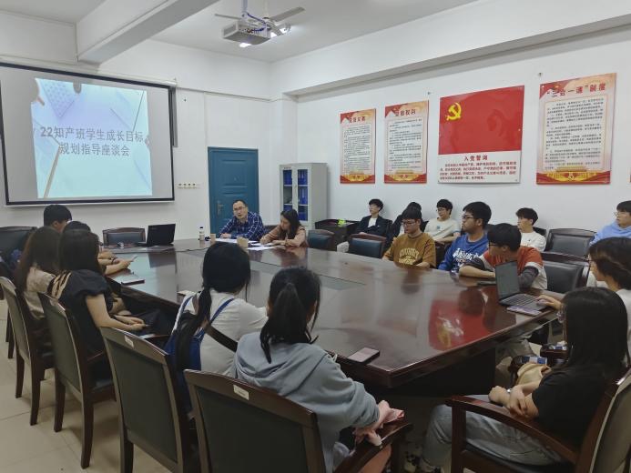 【本站讯】为引导学生扣好人生第一粒扣子,助推学生成长成才,4月12日至13日于八栋会议室,ok138cn太阳集团22知产-1BF班举行学生成长目标规划指导座谈会。ok138cn太阳集团院长周四丁、副院长孟磊先后参加讨论活动。知产-1BF班班主任全程参加指导,全班同学共45人分两批参加本次活动。