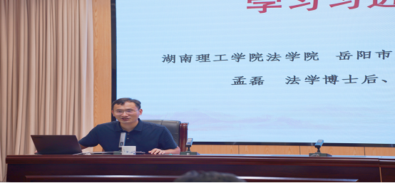 2024年7月31日下午,应岳阳市自然资源和规划局邀请,ok138cn太阳集团副教授、岳阳市习近平法治思想理论与实践研究基地研究员孟磊博士后做“深入学习贯彻习近平法治思想”专题报告。岳阳市自然资源和规划局党组书记、局长许淞主持会议并讲话,全体局领导、局机关及二级机构副科实职以上干部参加集中授课学习。