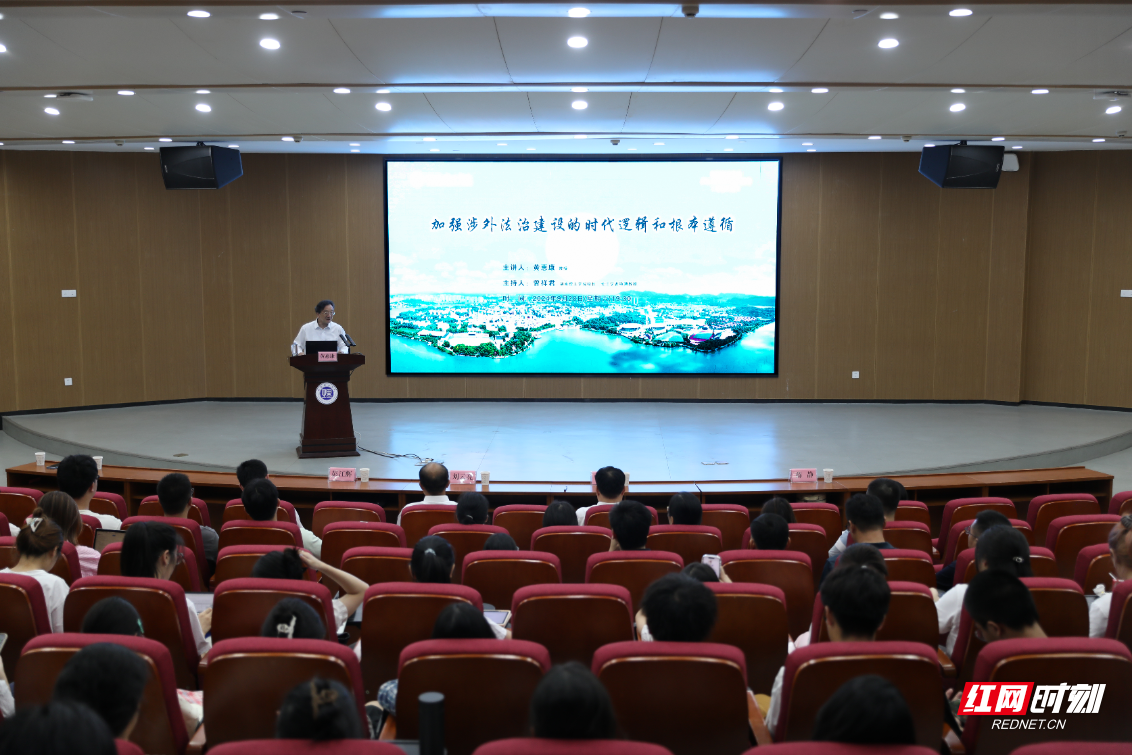 红网时刻新闻9月29日讯(通讯员 张博 龙龙)9月28日晚,湖南理工学院在17118报告厅举办南湖法治论坛,特邀国际法领域资深专家黄惠康主讲“新时代加强涉外法治建设的根本遵循和时代逻辑”,湖南理工学院校长曾祥君主持报告会。