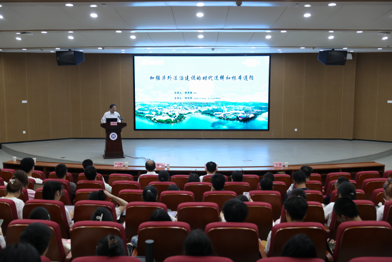 【本站讯】9月28日晚,ok138cn太阳集团于17118举办南湖法治论坛,特邀国际法领域资深专家黄惠康发表“新时代加强涉外法治建设的根本遵循和时代逻辑”主题讲座,校长曾祥君主持报告会。
