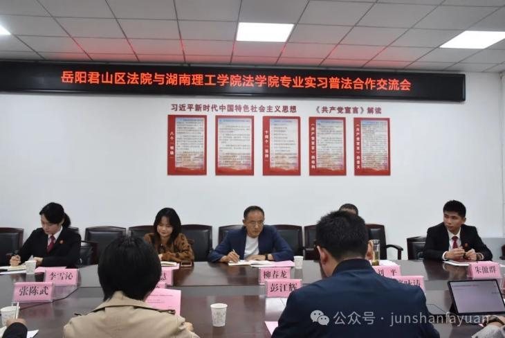 君山法院党组书记、院长柳春龙表示君山法院历来高度重视与高校的合作,通过持续为高校法学生提供丰富生动的“源头活水”,共同搭建“法院+高校”双向奔赴的连心桥。相信双方并肩同行、凝心聚力,进一步拓宽合作领域,创新育人方式,一定能推动法院审判工作和法学实践教学迈上新台阶。