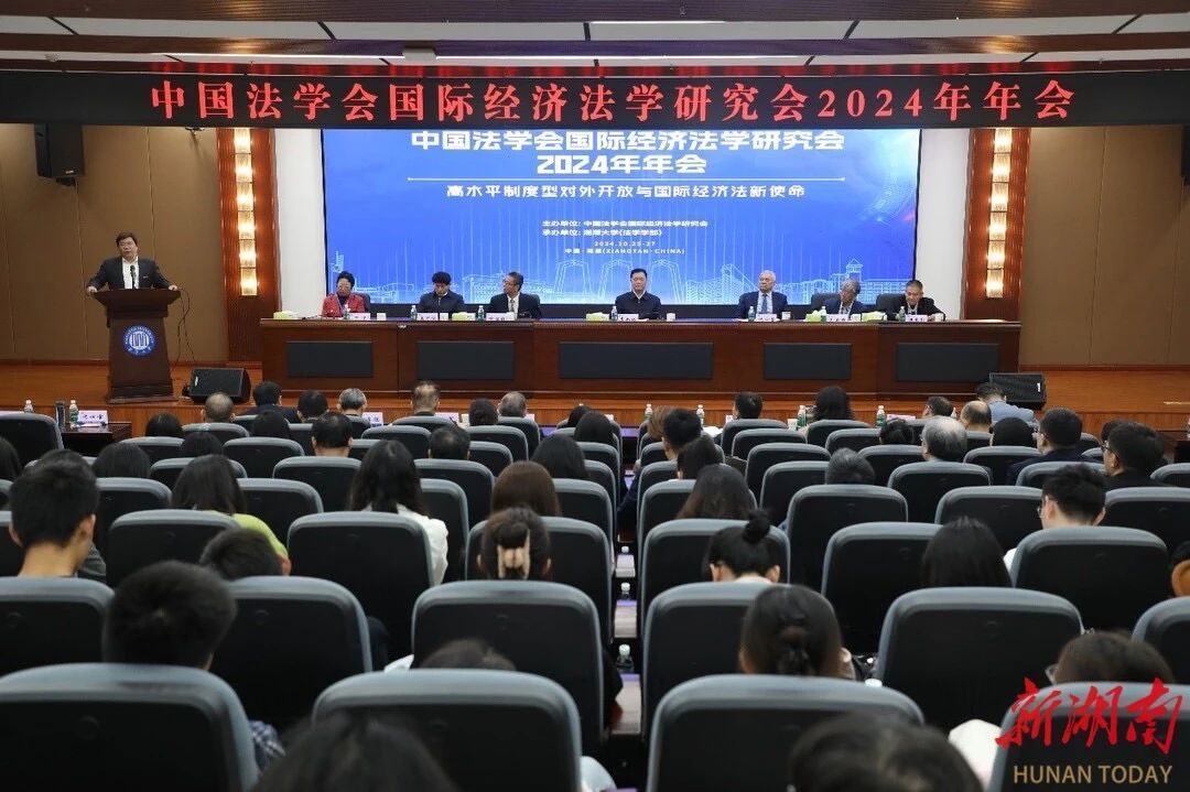 为深入学习贯彻习近平法治思想和习近平总书记关于加强涉外法治工作的重要论述,不断提高涉外司法能力水平,10月25日至27日,中国法学会国际经济法学研究会2024年会在湘潭大学召开。本次大会由中国法学会国际经济法学研究会主办,湘潭大学法学学部承办,省内外高等院校、科研机构和法律实务部门的专家学者逾150人参会。