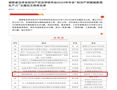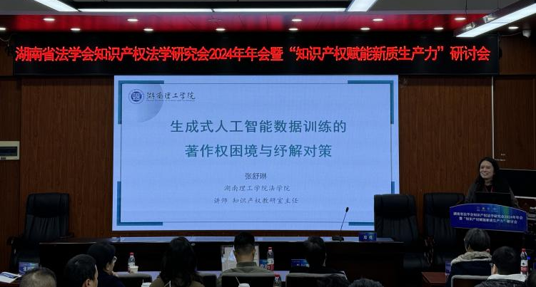 陈祥玲博士当选为湖南省法学会知识产权法学研究会理事,张舒琳博士在会议的第二分论坛第二单元以《生成式人工智能数据训练的著作权困境与纾解对策》为题作主题发言,围绕生成式人工智能数据训练行为的现有争议以及该行为在著作权法上的定性展开探讨,并提出了纾解对策。