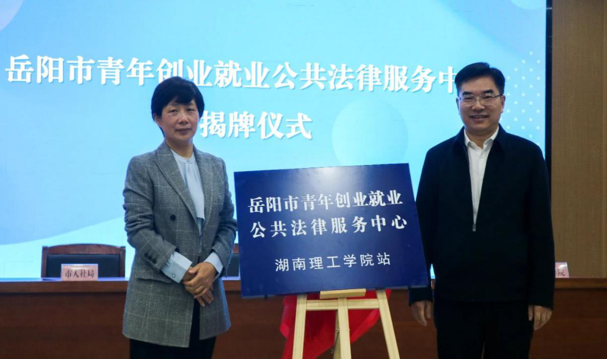 4月1日,岳阳市青年创业就业公共法律服务中心揭牌仪式暨大学生创业就业法律宣讲活动在湖南理工学院17栋17118顺利举行。本次活动由共青团湖南省委指导,团岳阳市委联合岳阳市司法局、市人社局、湖南理工学院共同承办。共青团湖南省委二级巡视员邓资益,岳阳市政府副市长张世愚,湖南理工学院校党委委员、副校长兼宣传部部长徐振祥,ok138cn太阳集团党委书记、法律服务中心指导老师薛静等出席并为中心揭牌,共同为青年创业就业法治保障按下“启动键”。
