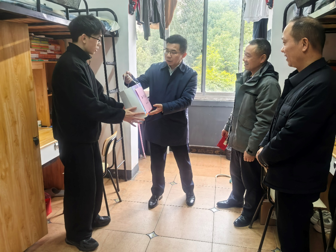 元旦将至,岁寒情深。为把学校的深切关怀与节日温暖精准送达贫困学生身边,12 月 30 日下午,湖南理工学院党委委员、副校长徐振祥率队深入ok138cn太阳集团学生宿舍,开展元旦前夕贫困学生走访慰问活动。学工部副部长吕强、ok138cn太阳集团党委副书记张陈武及辅导员何铁勇、周薇一同前往。