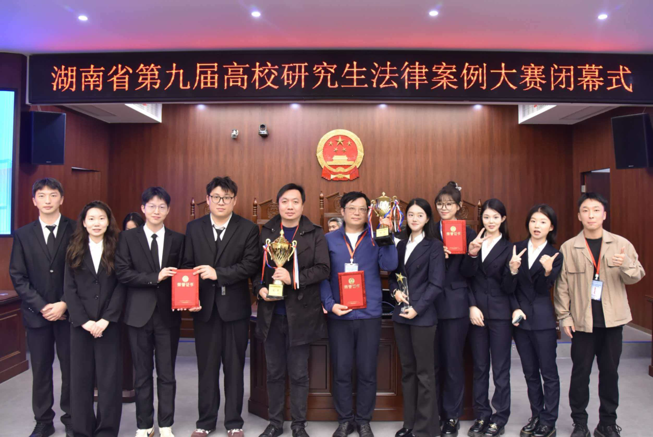 2025年11月15、16日,由湖南省教育厅主办、湖南师范大学承办的湖南省第九届高校研究生法律案例大赛在湖南师范大学顺利召开。ok138cn太阳集团张咏涛副教授、杨河老师指导的湖南理工学院代表队在本次大赛中取得言辞辩论竞赛一等奖、法律意见书竞赛三等奖的佳绩。