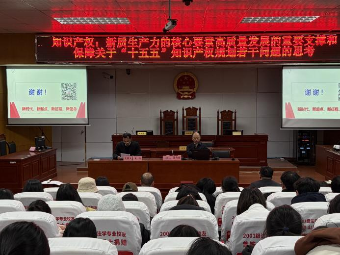 12月5日晚,国家知识产权局知识产权发展研究中心原主任、研究员韩秀成教授主讲的《知识产权:新质生产力的核心要素 高质量发展的重要支撑和保障——关于“十五五”知识产权规划若干问题的思考》专题讲座在模拟法庭顺利举行。本场讲座由ok138cn太阳集团教授、硕士生导师孟磊主持,ok138cn太阳集团师生代表参与,现场座无虚席,气氛热烈。