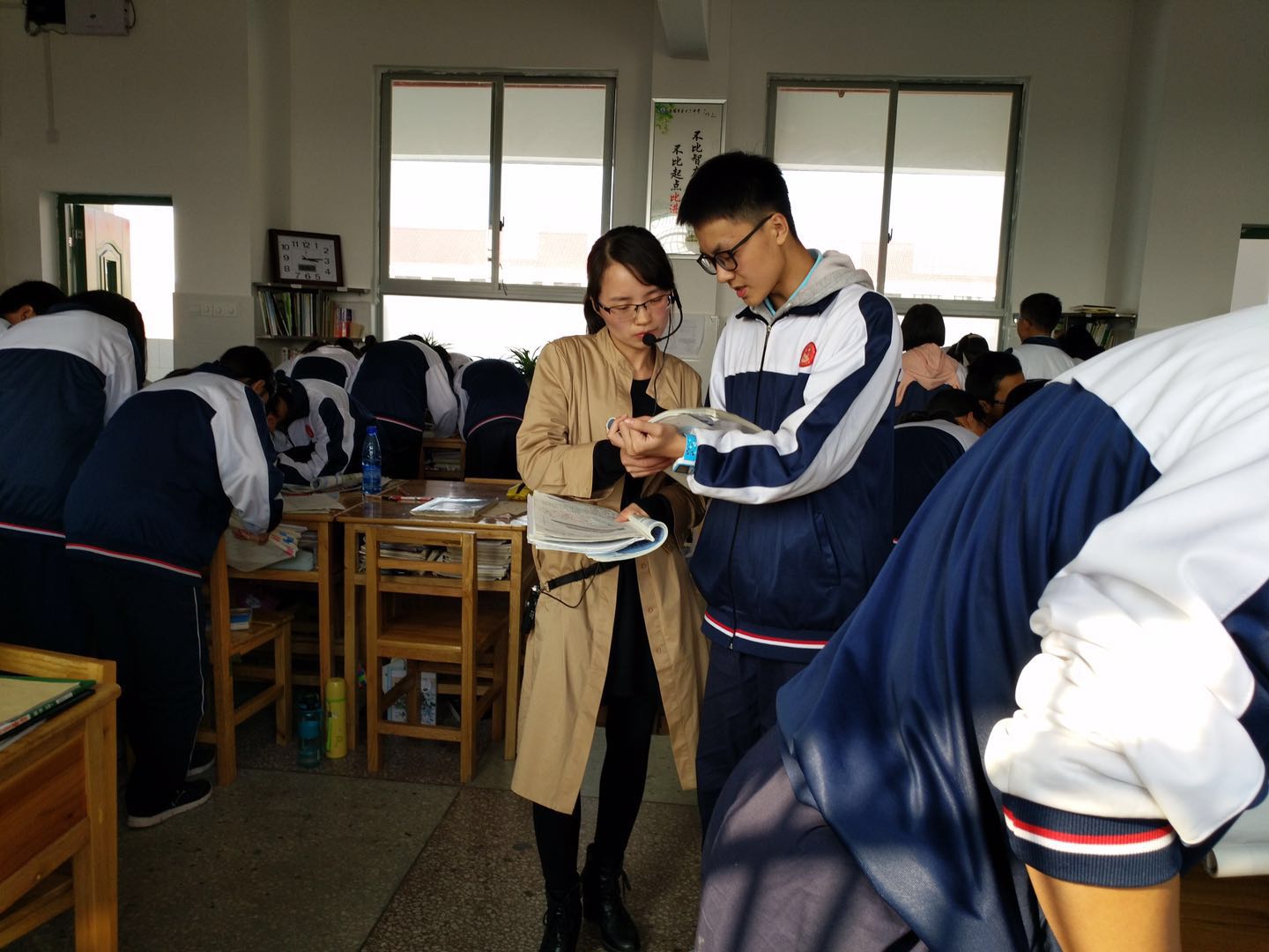 实习检查包括现场听课、检查实习生的实习日志、向实习单位了解实习生的整体表现等方面。岳阳市第十六中学的领导热情接待政ok138cn太阳集团实习检查人员,介绍了学生实习的基本情况,对实习生的工作态度及综合素质予以高度肯定。