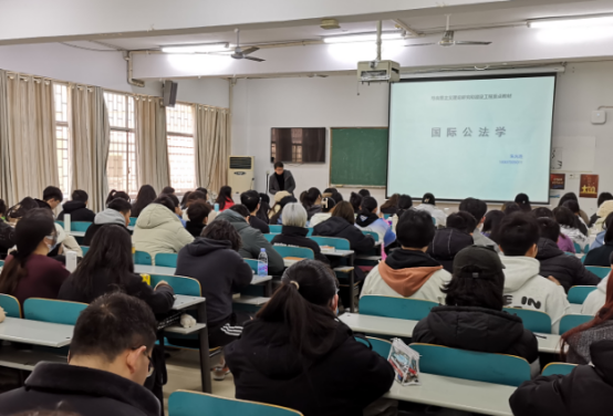 今天随机听课的课堂是21级法学一班的课,同学们带着教材、笔记本,提前十分钟进入课堂,精神风貌良好。今天给该班学生上课的老师是朱光胜博士,课程为《国际法》。朱光胜以两个案例引入课堂,启发学生思考《国际法》是什么法,以及有什么作用?学生们认真听讲,与老师不断互动。