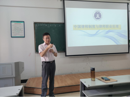 李振湘主任以问题导入,询问了同学们未来的就职意向,同学们纷纷对律师职业表现出强烈的兴趣。李振湘主任以生动有趣的案例和不同时期中国历史上典型的优秀律师代表的故事为同学们梳理了中国律师制度的发展脉络,并重点介绍了我国大成、君合、盈科等十大律师事务所以及岳州律师事务所的运行模式和业务状况。他结合自身20余年的律师从业经历与同学们分享了律师应当遵循的职业伦理。李振湘主任丰厚的实践经验、风趣的讲解风格激发了同学们对律师行业的浓厚兴趣和职业认同。