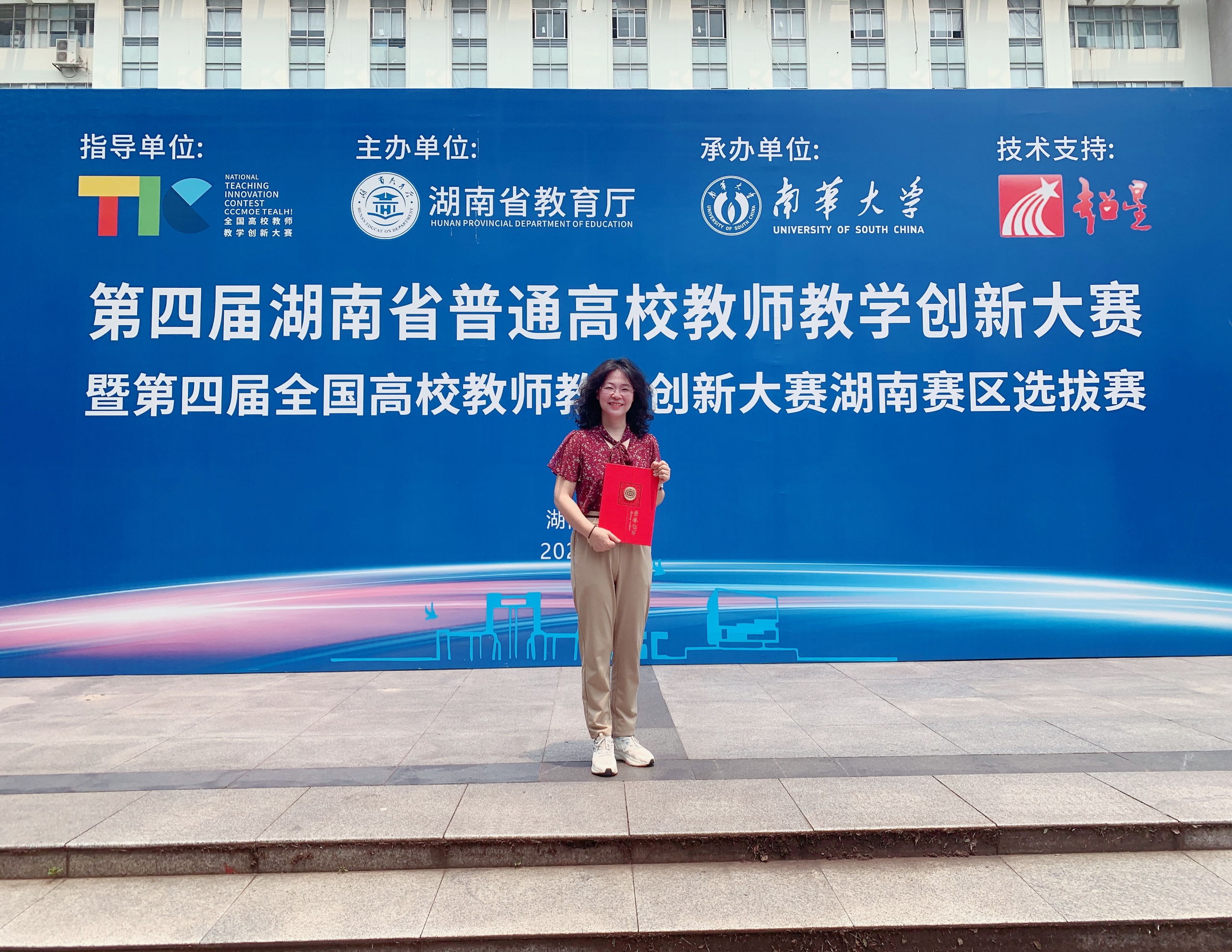 2024年4月29日,第四届湖南省高校教师教学创新大赛决赛在南华大学顺利落幕。我院段辉艳博士荣获课程思政副高组一等奖,这是我校在此项最高级别的教学竞赛中首次摘得全省一等奖的殊荣。