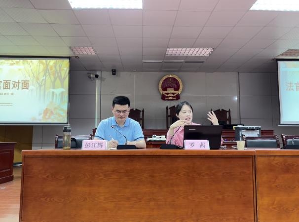 【本站讯】为深化课程思政教育教学改革,推进湖南省一流课程建设,2025年4月11日下午在八栋教学楼8T2模拟法庭,“中国当代司法制度”本科生课堂开展了别开生面的“与法官面对面”课程思政示范课活动,湖南省岳阳市中级人民法院罗茜法官与课程负责人彭江辉老师双师同堂为2024级法学专业本科生讲授中国审判制度。