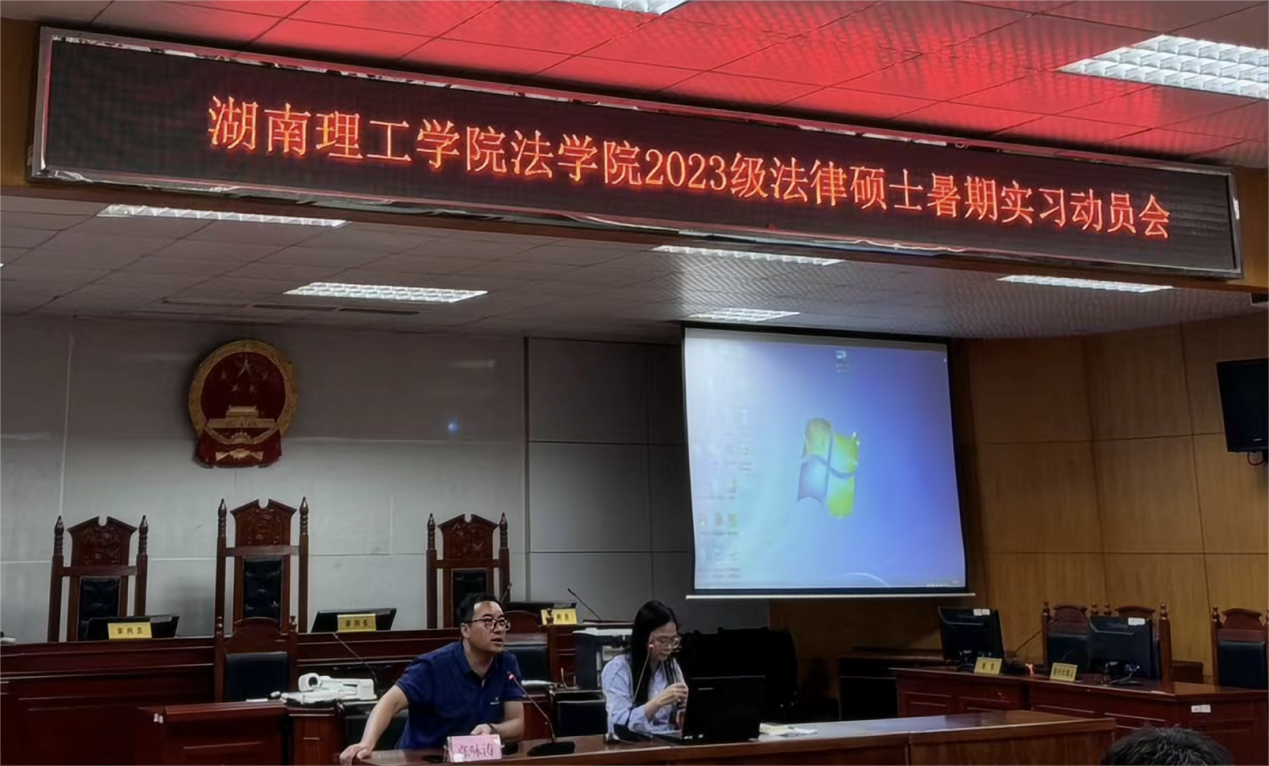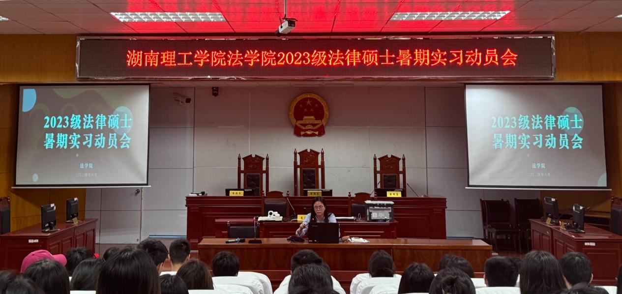 为贯彻落实国家创新型法治人才培养理念,培养德法兼修的法治人才,ok138cn太阳集团于2024年6月25日,在模拟法庭召开了2024年度法律硕士暑期实习动员大会,旨在激发我院法律硕士研究生的职业热情,为学生们搭建从校园走向社会、理论联系实际的桥梁。