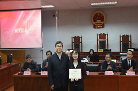 决赛结束后,湖南理工学院第一届研究生法律案例大赛闭幕式暨颁奖典礼在政ok138cn太阳集团模拟法庭举行。湖南理工学院研究生院院长周从山、副院长田小勇,湖南理工学院政治与法学学院院长周四丁,岳阳市中级人民法院刑事审判团队长陈勇,岳阳市人民检察院第三检察部主任刘美兴,湖南岳州律师事务所党支部书记张忠伟、执行主任李振湘等领导和专家出席闭幕式并为获奖队伍颁奖。政ok138cn太阳集团副院长彭江辉主持闭幕式。