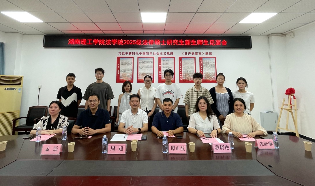 企业法务方向的见面会在8210C举行,由谭正航教授主持。参加会议的校内导师有孟磊副教授、段辉艳副教授、陈祥玲博士、张舒琳博士,实务导师代表有湖南金州(岳阳)律师事务所创始人、岳阳市律师协会会长周超老师。会上,谭正航教授首先对2025级新生的加入表示热烈祝贺,随后着重强调了此次见面会不仅是师生相识的契机,更是大家了解企业法务专业定位、找准学习方向的关键起点。在导师分享环节,与会导师们结合自身多年教学科研与实务经验,为新生送上极具针对性的学习建议与美好寄语,鼓励新生培养主动学习的习惯,筑牢基础知识的根基,积极参与企业法务相关实习,在实践中积累处理复杂法律问题的经验。导师们的分享既有理论高度,又具实践指导性,让新生深受启发。