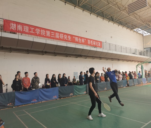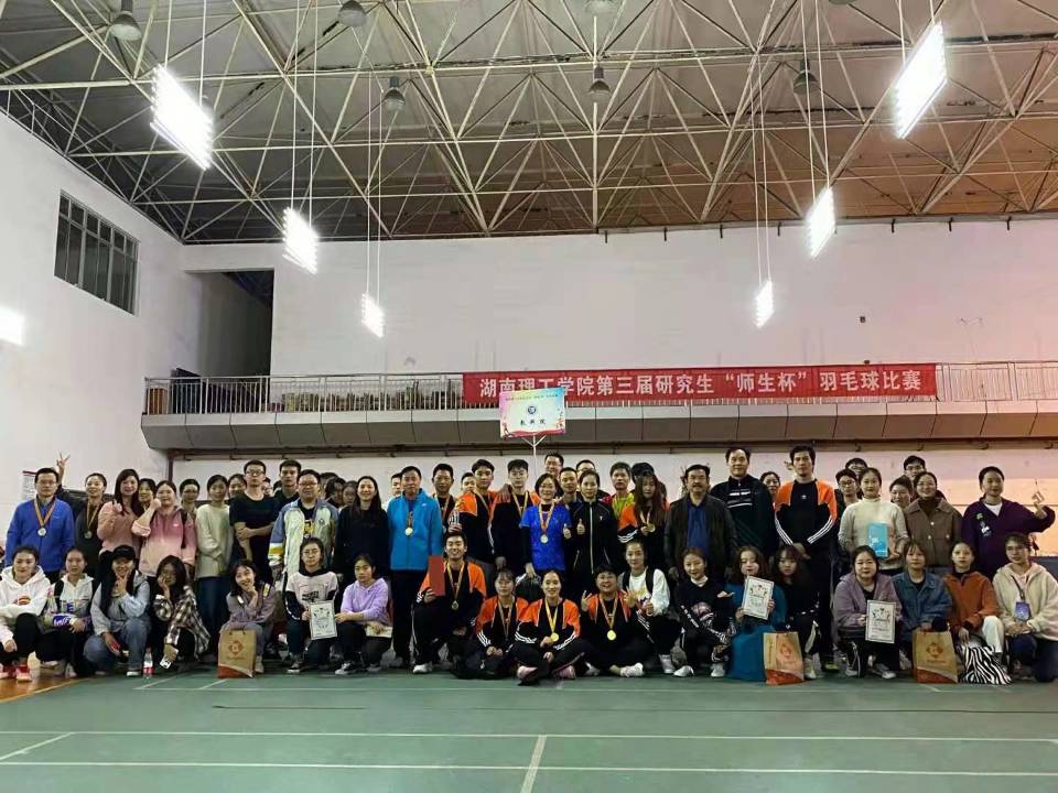 为了丰富同学们的课余文化生活,提高身体素质,进一步增进同学情谊,湖南理工学院第三届研究生“师生杯”羽毛球赛于11月14号上午在东院体育馆羽毛球场拉开帷幕。我院院长助理孟磊博士担任领队,与学院数十名师生一道代表政ok138cn太阳集团参加比赛,通过奋力拼搏,最终获得第五名的好成绩,为学院争得了荣誉。