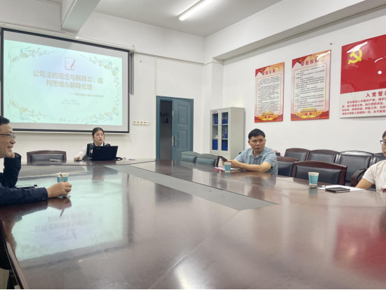 主讲环节的第一位分享同学是2021级马逸君同学,分享主题是“公司法的实用主义进路”。马逸君同学从理论与实践两方面对公司法的解释力进行剖析,指出公司法的研究重点要向实用主义进路转变,加强理论与实践的联系。