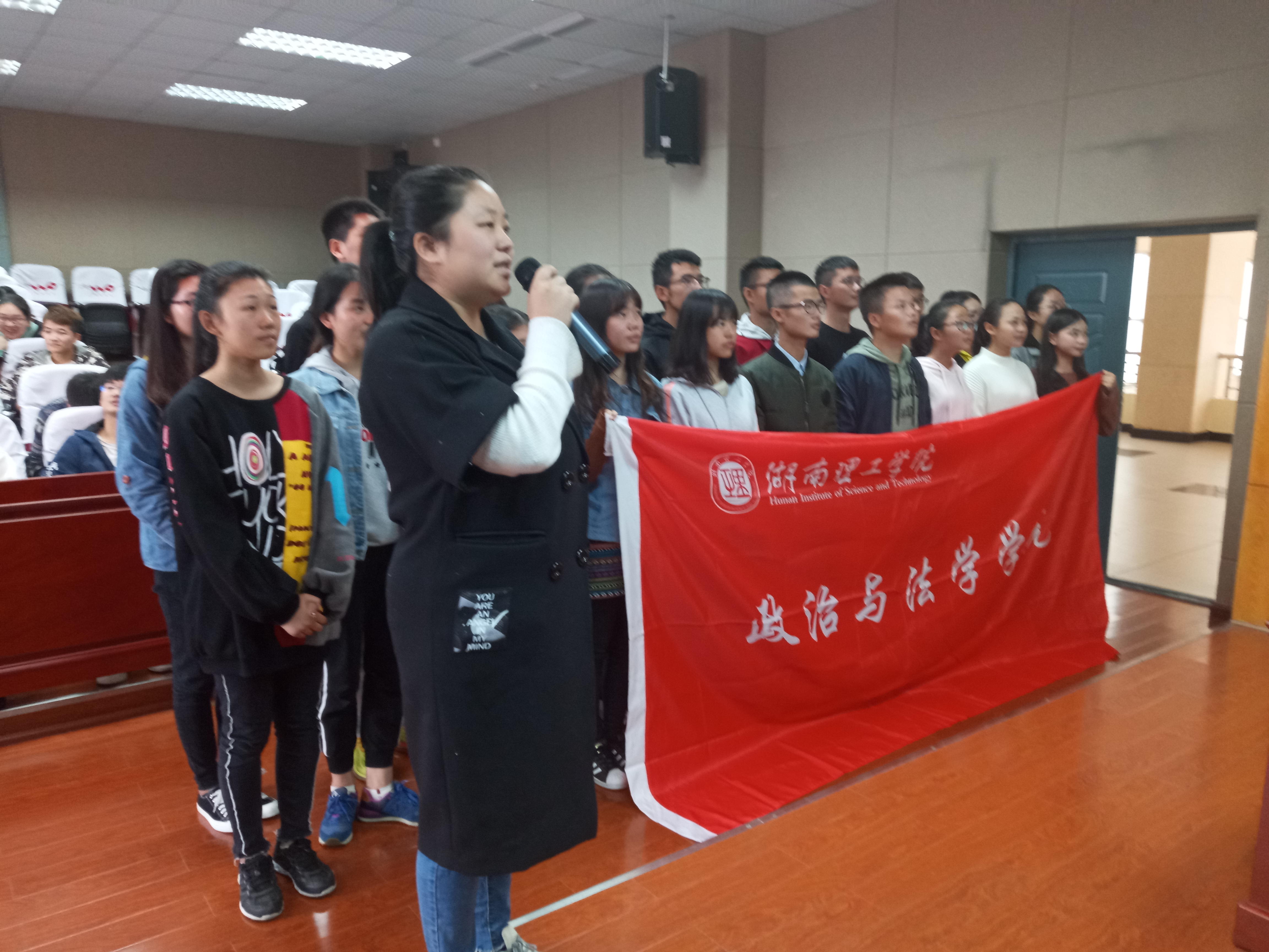 大会伊始,团学分会新老成员做简短自我介绍,各位学生干部对新进成员提出建议并进行鼓励。随后,在团总支书记魏嘉琦的带领下,20余位新进成员庄严宣誓:“我志愿加入湖南理工学院政治与ok138cn太阳集团团总支学生分会,遵守团学章程,执行团学决议,履行团学义务……”,宣誓毕,魏嘉琦代表学院团总支向新进成员表示热烈的欢迎和由衷的祝贺!魏老师结合学院团学现状,勉励各位干部干事提高认识,扎实工作,锻炼自己的能力,处理好学习与工作的关系,做一名品学兼优的学生,作广大同学的表率。