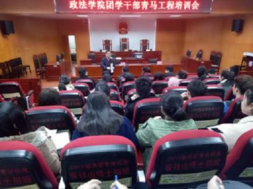 3月21日晚上七时,我院青马工程培训暨2017年团学分会学生干部第一次例会在模拟法庭召开。院党总支书记刘淳松、辅导员杨宗圆等领导老师出席会议,学院团总支代理书记及团学分会全体成员参加会议。