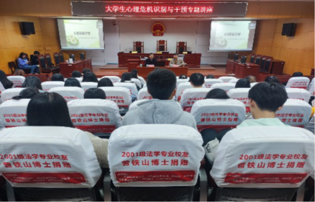 为帮助我院学生增强心理健康意识,掌握心理健康知识,提高心理异常鉴别能力,创造和谐良好的寝室环境,促进自身的身心健康。11月11日晚7时,学院分别在模拟法庭和7T1(腾讯会议连线)举办心理健康教育讲座暨寝室文明创建专题会。本次专题会由学工部副部长毛伟主讲,学院党委副书记张陈武、20级辅导员宋宏科、21级辅导员王旭智及2019、2020、2021级各班心健委员、安信委员、寝室长等近140名学生一起聆听讲座。