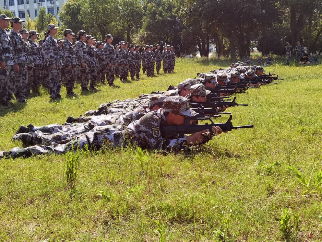 烈日下,草坪上,方阵间,青春风采完美彰显。在训练前,喻书记强调,同学们要有团结拼搏、永不言弃的精神,遇到困难、挫折和考验要以平常心对待,勇于拼搏挑战,超越自我。也嘱咐同学们在训练时要注意安全。“战术操作没有标准,谁能活下来,谁的战术就是对的。”在教官的带领下,2021级新生在阳光草坪进行战术训练,随着教官的一声令下,同学们熟练地向地扑下,手握枪柄,低姿匍匐,迅速向前方前进。许多同学持有九五式步枪模型枪进行训练,训练后,同学们表示,有幸能进行九五式步枪模型枪训练,心中怀着荣耀。