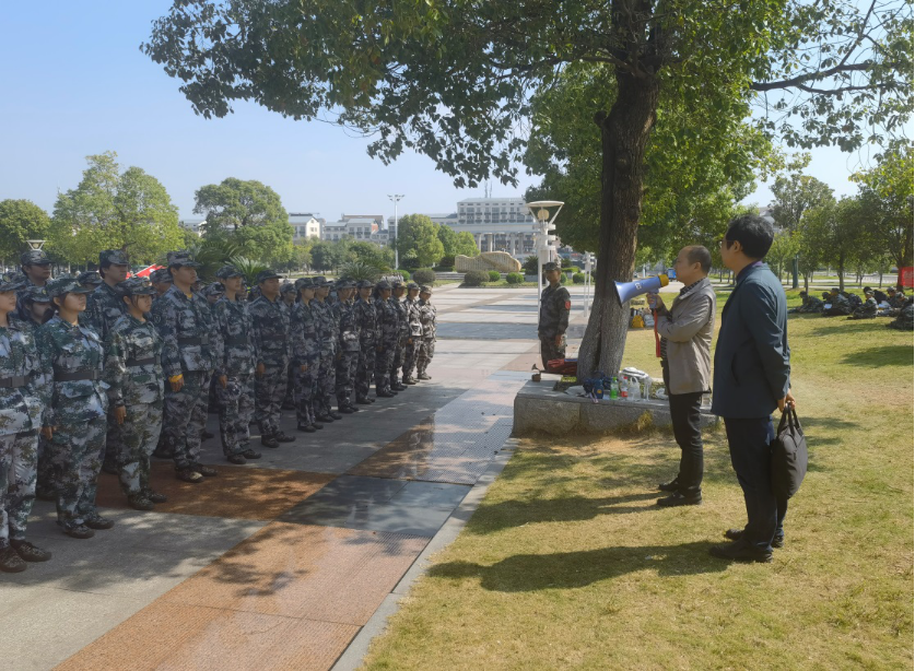 此次慰问,院长周四丁、党委副书记张陈武首先代表院领导老师表达了对新生的关心和祝福,鼓励同学们珍惜接下来的军训时光,发扬严守纪律、吃苦耐劳的精神,展现坚忍不拔的训练作风和积极向上的精神面貌,以高标准、严要求完成军训任务。同时,他谈到,近期天气转凉,日间温差严重,希望同学们注意身体、防寒保暖,身体是革命的本钱。
