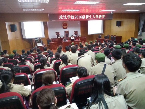 9月13日晚7时30分许,我院在模拟法庭举行新生入学教育专题——如何做一名高素质的大学生——讲座。此次讲座由我院党总支书记刘淳松担任主讲,新生辅导员王旭智、部分高年级同学及2016级全体新生参加。专题讲座由我院院长助理石蕙主持。