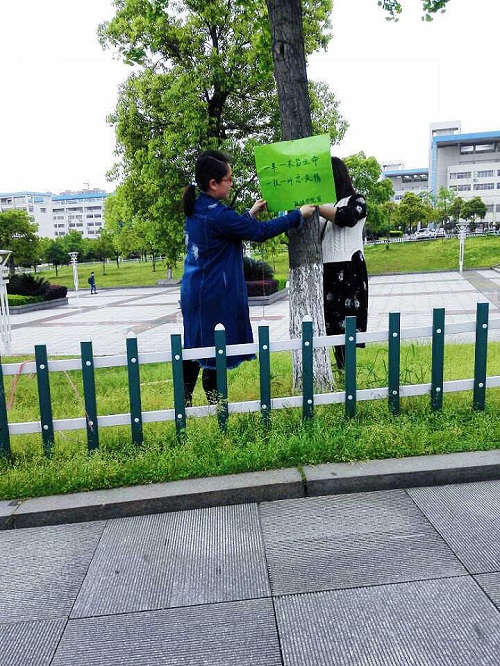 此次活动张贴的文明标语均由各班征集得来,经过整理评选,最终选出一些优秀的标语张贴在校园的各个地方。一张张写着“一草一木皆生命,一枝一叶总关情”、“天地 ‘粮’心,粮食莫剩”“即使饥肠辘辘,也要风度依旧”等标语凝聚着同学们的智慧,也传递着倡导校园文明的声音。围绕着“三走活动”,学院还特别制作了“走出寝室一小步,迈向人生一大步”、“如果你不走出去,你会以为这里就是全世界”的文明标语,提醒师生们要走出寝室,拥抱自然。