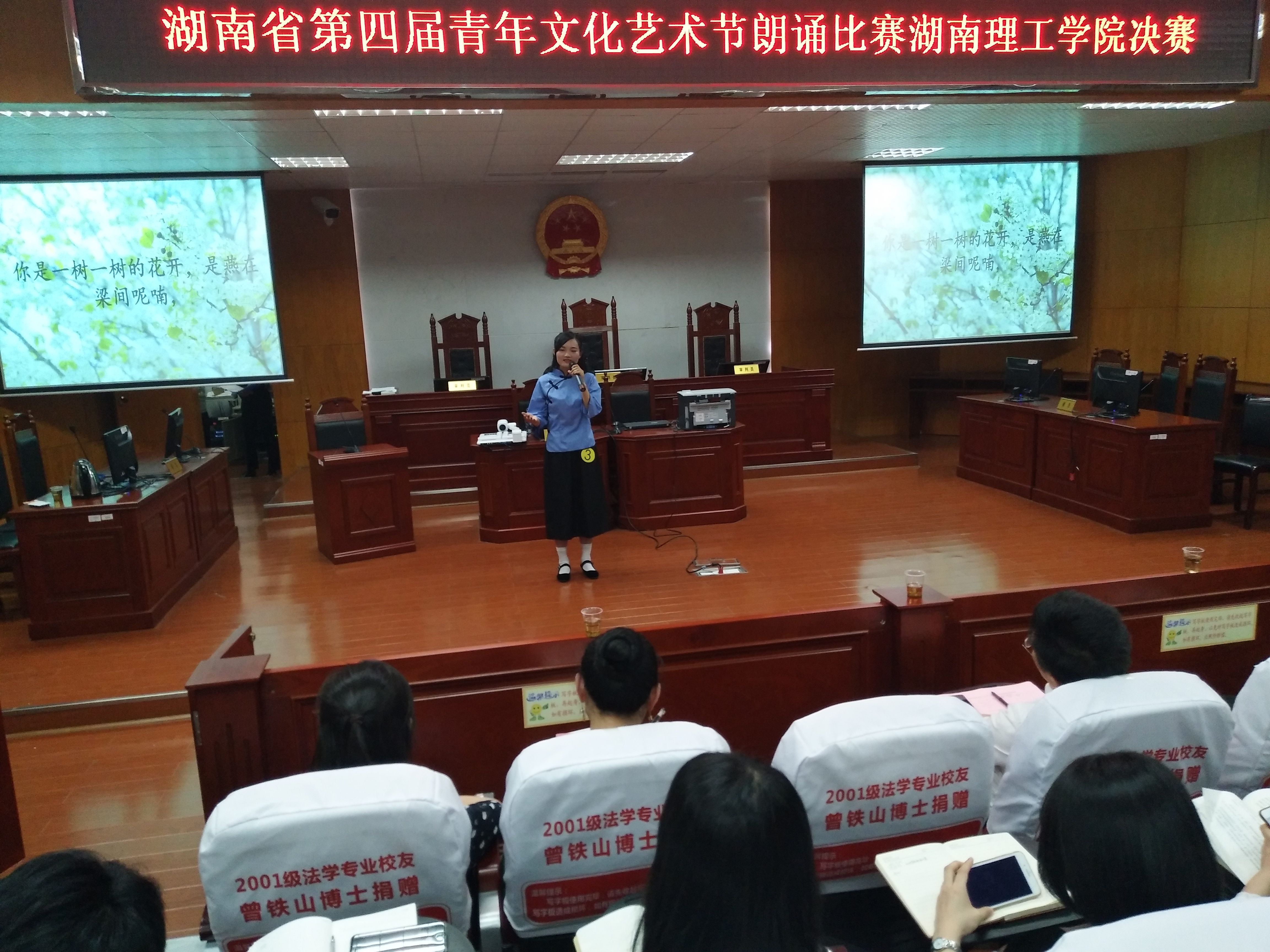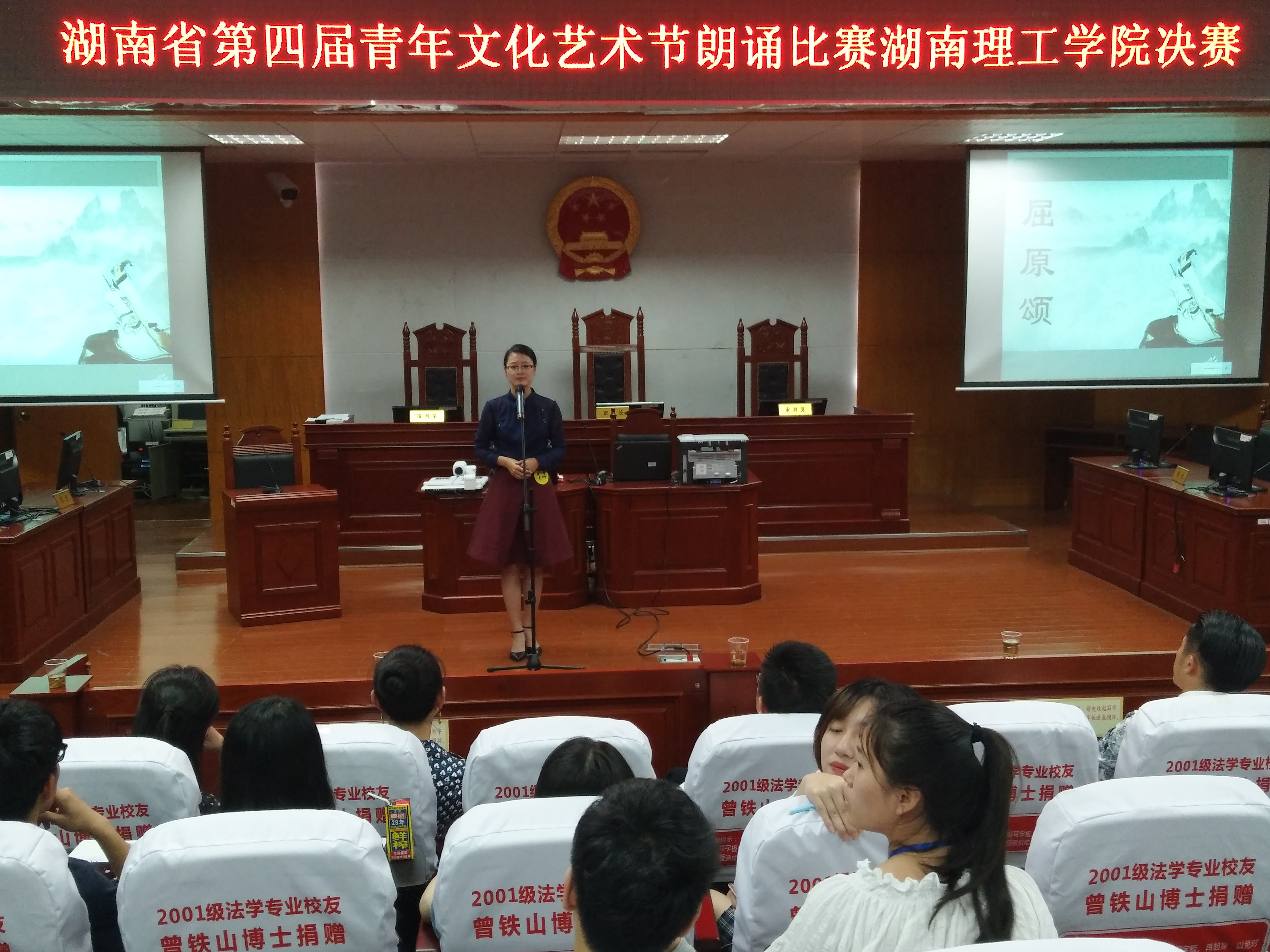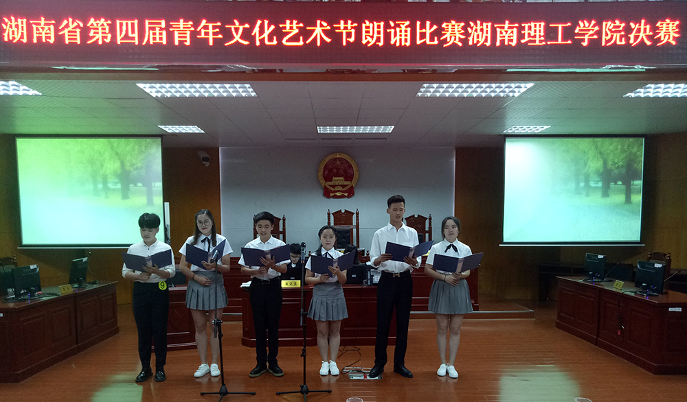 由我校主办,政ok138cn太阳集团承办的湖南省第四届青年文化艺术节朗诵比赛“点燃青春激情起航艺术梦想”湖南理工学院赛区决赛于5月26日晚在政ok138cn太阳集团模拟法庭举行。我校党委学工部、党委武装部部长徐振祥,学校新闻中心主任潘昕,南湖学院学生评委代表田志诚同学莅临本次大赛并担任评委。政ok138cn太阳集团党总支副书记石蕙、辅导员杨宗圆和王旭智出席了此次比赛。政ok138cn太阳集团团学分会主席团及学校各个学院团总支、学生分会团总支副书记、文娱部部长、共青团湖南理工学院委员会大学生艺术团数名成员聆听了此次比赛。本次比赛由政ok138cn太阳集团2016级思政班的彭依依担任主持人。