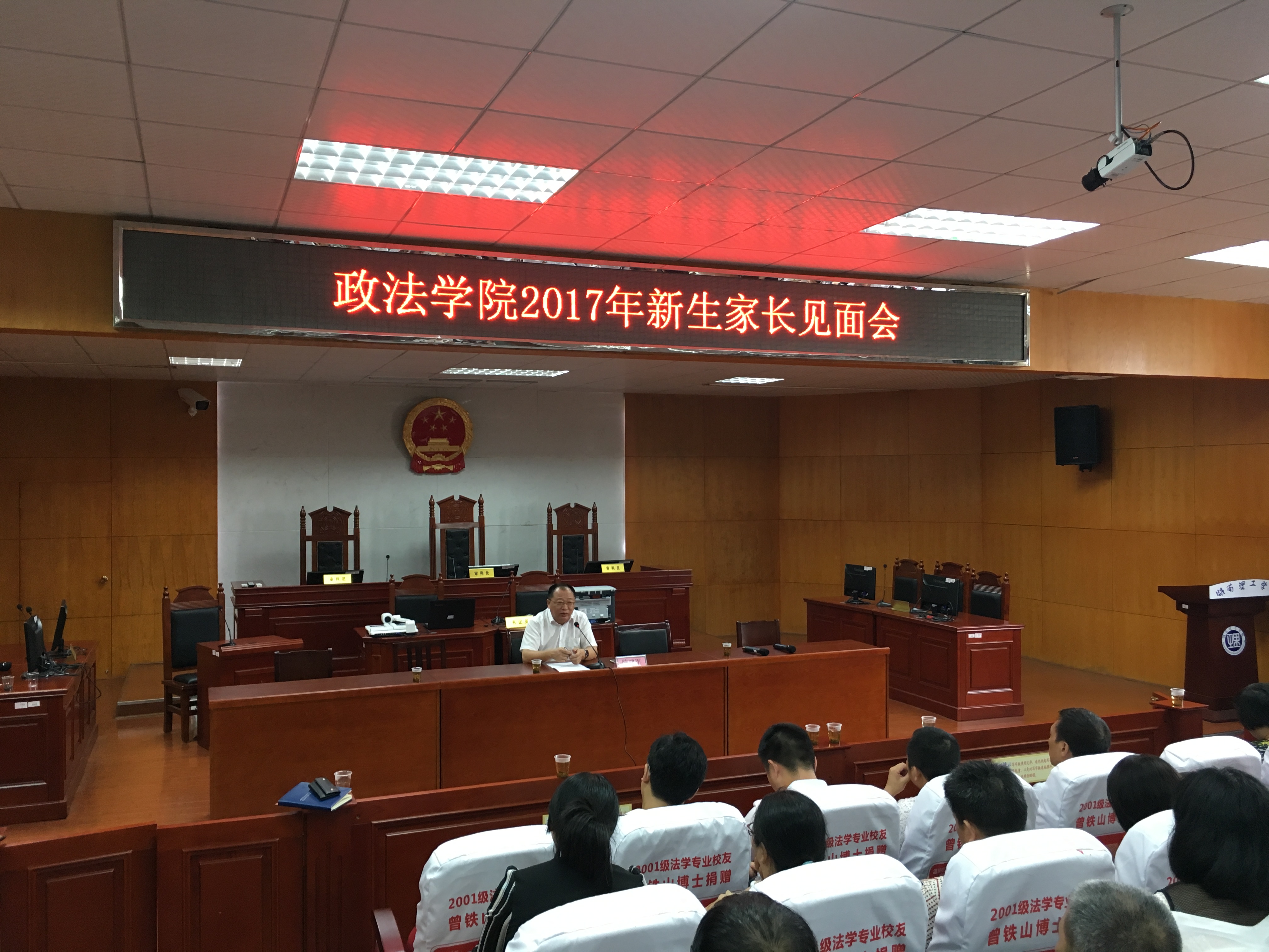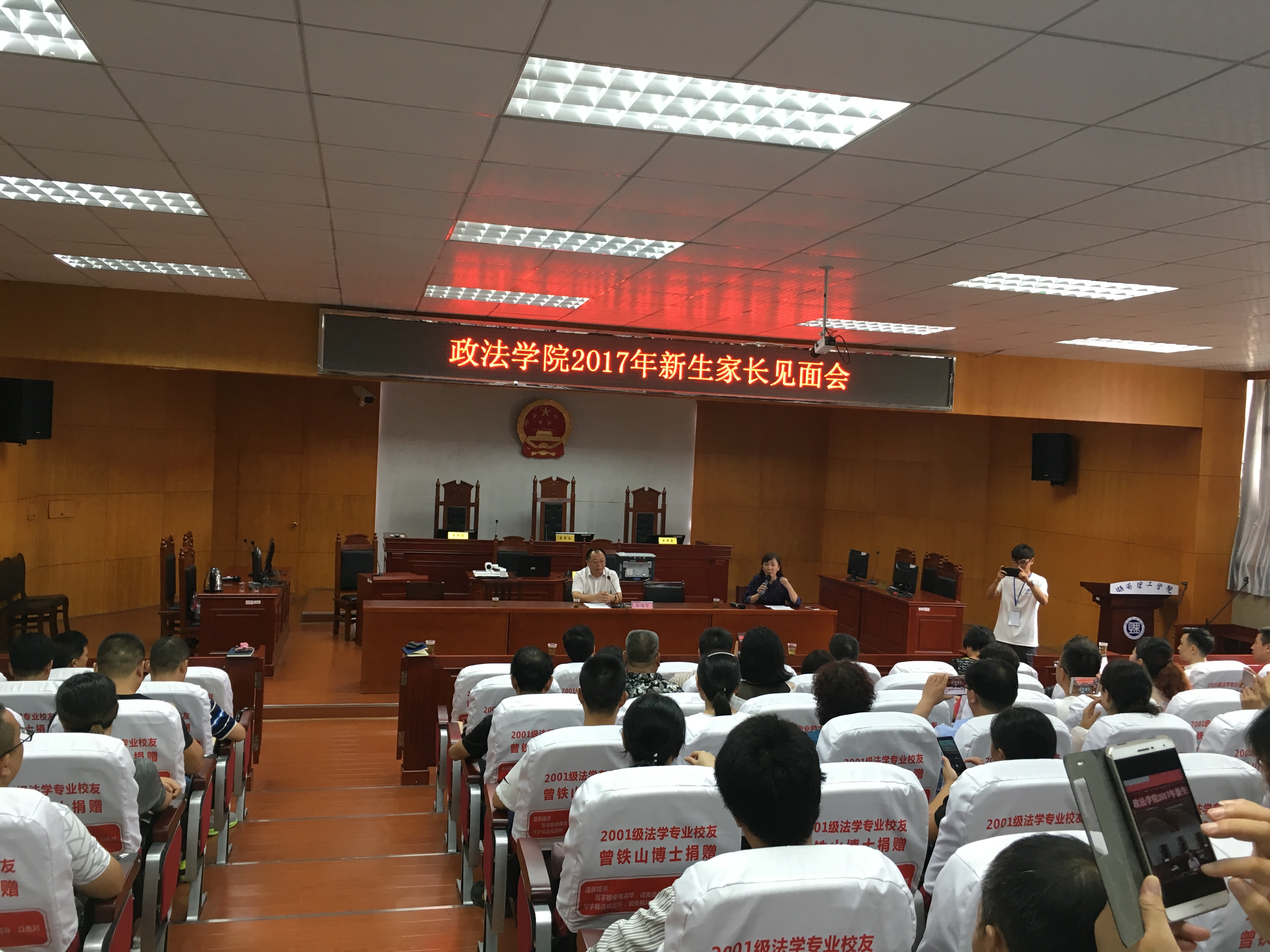 9月9日下午3时许,政ok138cn太阳集团2017级新生家长见面会在8教学楼模拟法庭举行。学院院长陈建军、党总支书记刘淳松、副院长周四丁、党总支副书记石蕙、院长助理尹晓闻,班主任廖丹、曹乔华、贺志韧,辅导员杨宗圆等领导老师出席本次见面会;政ok138cn太阳集团2017级130多名新生家长与会。学院党总支副书记石蕙主持家长见面会。