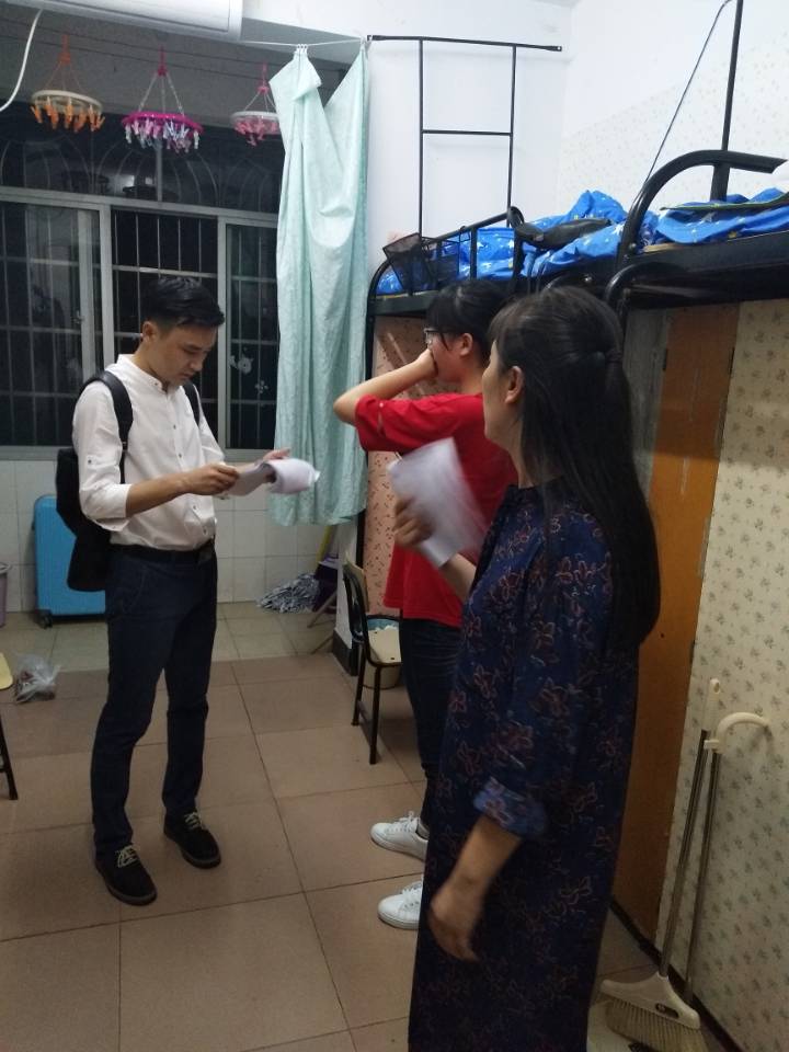 为帮助2017级新生尽快适应大学生活,并为他们营造安全舒适的宿舍环境,9月9日晚8时30分,受政ok138cn太阳集团院长陈建军、总支书记刘淳松的委托,学院党总支副书记石蕙、2017级辅导员杨宗圆等领导老师在2017级班主任助理陪同下,深入学生宿舍看望2017级新生。