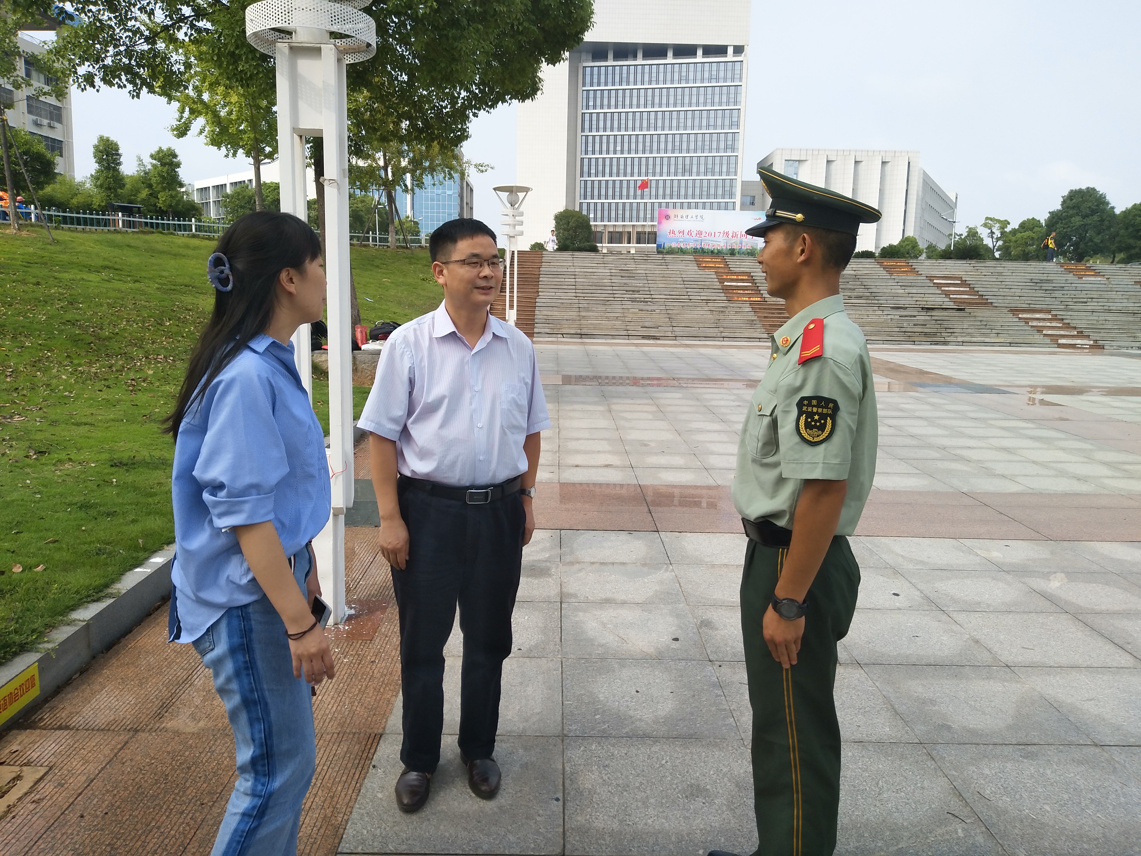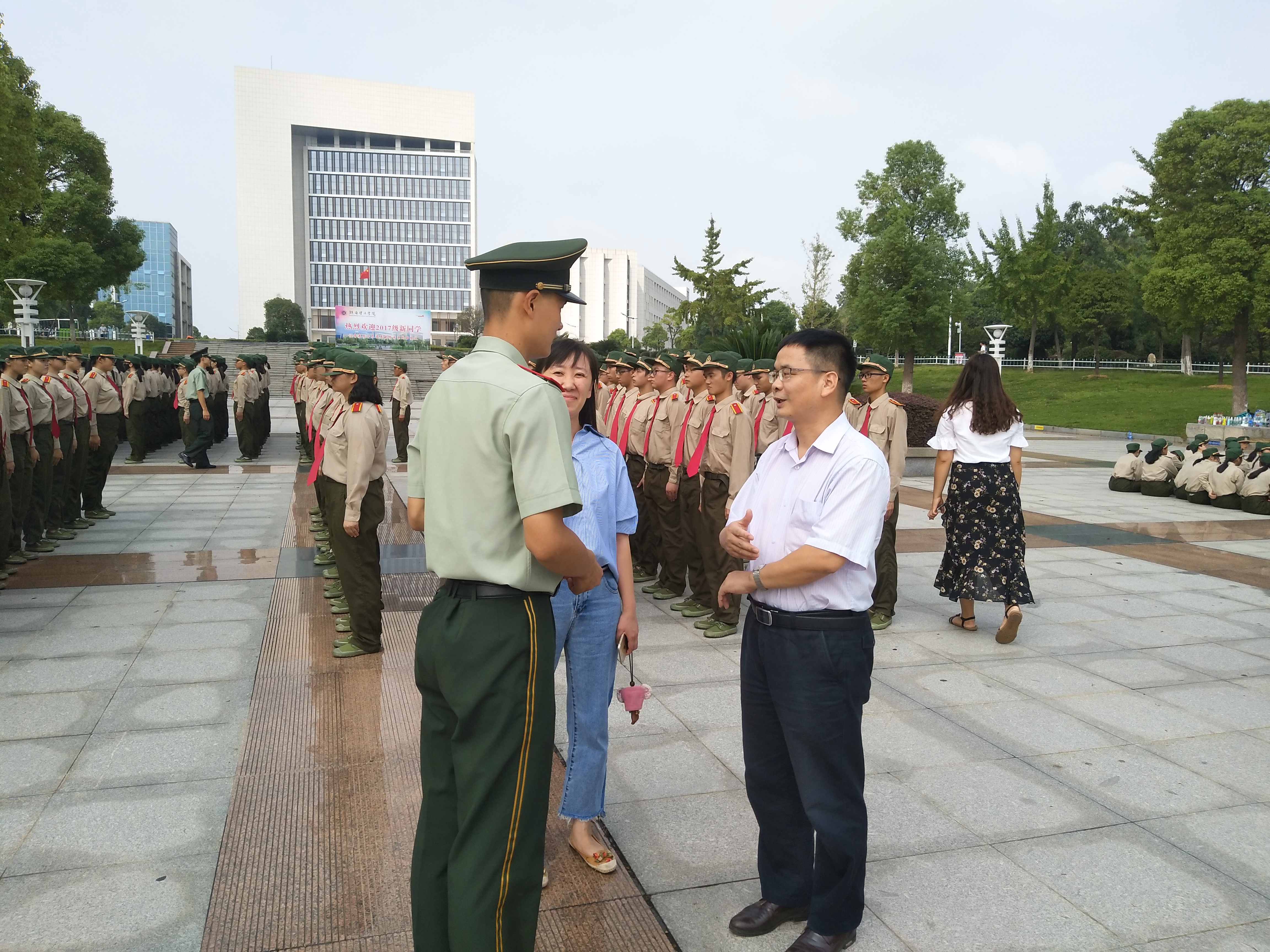 九月理工的气候凉爽宜人,政ok138cn太阳集团2017级新生开始了他们的大学第一门课——军训。为了了解新生的军训情况,同时表达对教官的感谢和对新生的关心,9月11日上午,学院党总支书记刘淳松、党总支副书记石蕙,来到军训训练场看望并慰问军训教官及学院2017级全体受训新生。