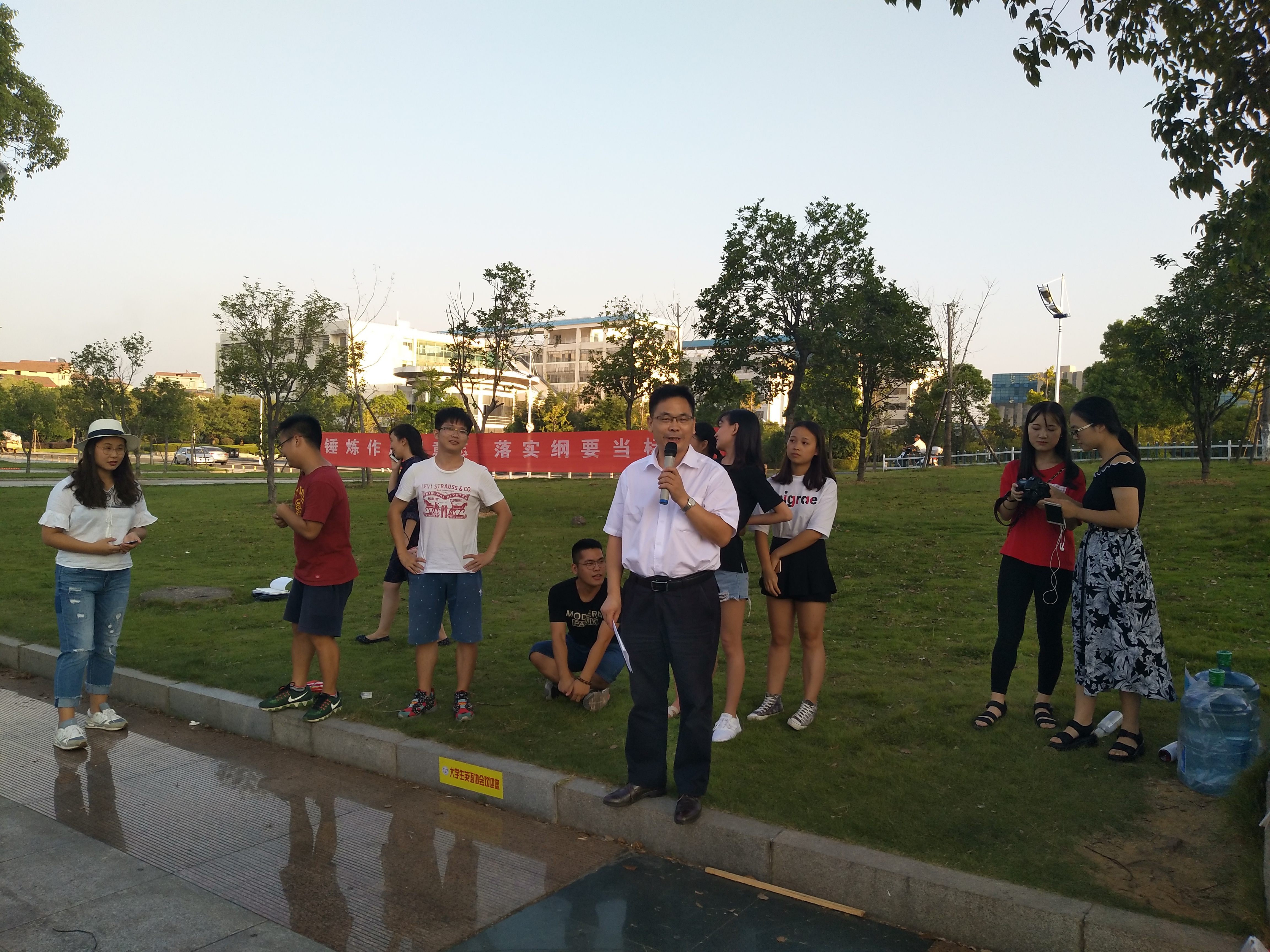 9月16日下午,政ok138cn太阳集团党总支书记刘淳松、副书记石蕙、辅导员杨宗圆等领导老师到云梦广场,亲切慰问带训教官和正在参加军训的2017级新生。
