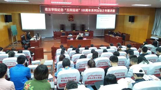 4月22日晚七时,政ok138cn太阳集团在学院模拟法庭举办纪念“五四运动”一百周年专题讲座,党总支书记陈建军教授以“五四运动与当代大学生的责任”为题为全院师生代表上了一堂精彩的教育课,学工线全体教师及近140名学生代表参与聆听。