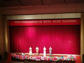 5月19日晚,政治与法学学院2019届毕业生“菁梦芳华,季忆留夏”毕业欢送晚会在我校东院演播厅隆重举行。院领导彭江辉、石蕙、尹晓闻、特电学院党总支副书记张陈武及我院部分老师代表与2015级同学们一起观看了此次晚会。